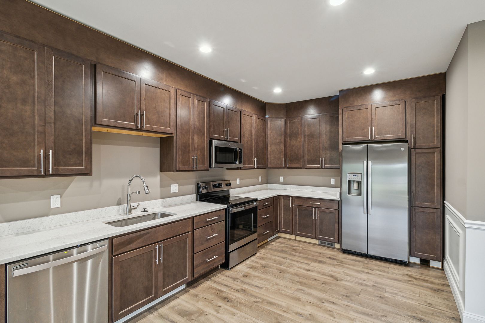 Our ultra-modern rentals come with air conditioning, wall-to-wall hardwood flooring, granite, granite countertops, walk-in closets, stainless steel appliances, and much more. Washer/dryer hookups are available on the first floor for your convenience. Every unit has its own walkout basement, yard, and garage with two parking spaces, too. Want to bring your pets? There’s plenty of room. You just have to pay the non-refundable pet fee.